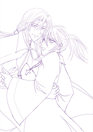 ちなみに、ネット上じゃ分かりませんが、今回線画が恐ろしく汚いです(汗)すみません!タブでペン入れはやはりダメだった模様…。いつも鉛筆線なんですが、ゴミ取り作業が大変なんですよね。自分で大体は取ってるんですが。いつもゆのさんが最終修正をしてくれてて……ゆのさんの作業を減らそうと試みたら、線が汚くて、反対に余計に手間をかけてしまった(汗)あ~、ホントにいつもすみません!!ゆのさん。